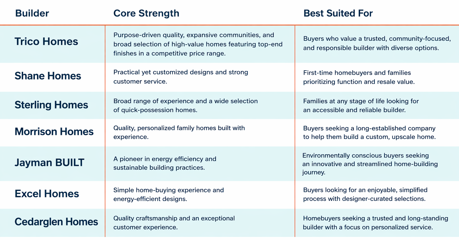 Calgary is home to a competitive homebuilding scene, each company with a unique story and approach. While many builders excel in a single niche, several have built a legacy by serving the diverse needs of this growing city and its surrounding communities.