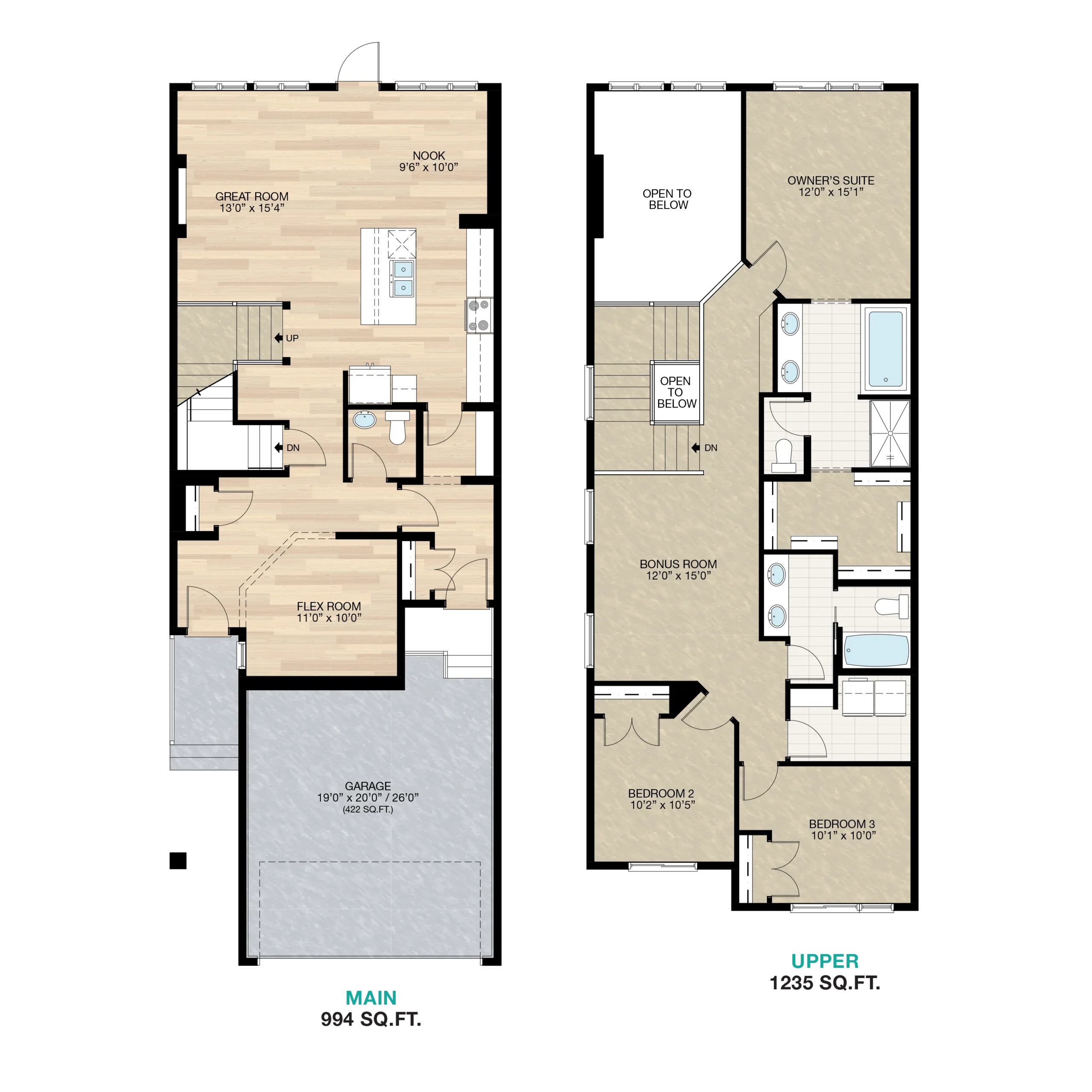 The Aria offers the perfect balance of comfort and style, featuring an open living area and a light-filled dining nook ideal for daily life or hosting friends. Upstairs, the inviting owner’s suite includes an ensuite with soaker tub – the perfect place to unwind at the end of the day.
