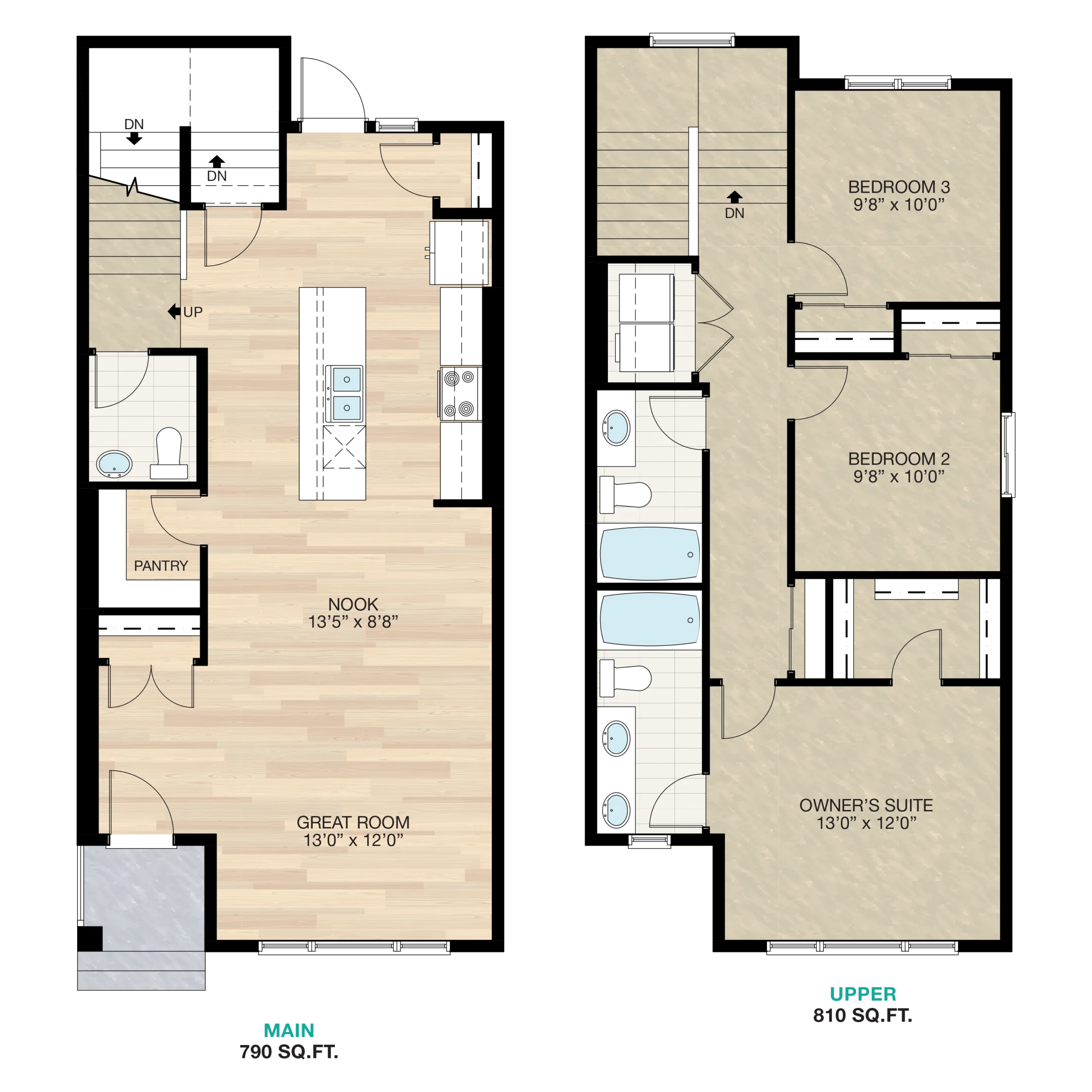 The Bravo suits busy families who want an easy-flow main floor for cooking, gathering, and staying connected. A walk-in pantry keeps the kitchen organized, while three spacious bedrooms and upstairs laundry simplify daily routines. A 4-piece ensuite offers a peaceful space to recharge.