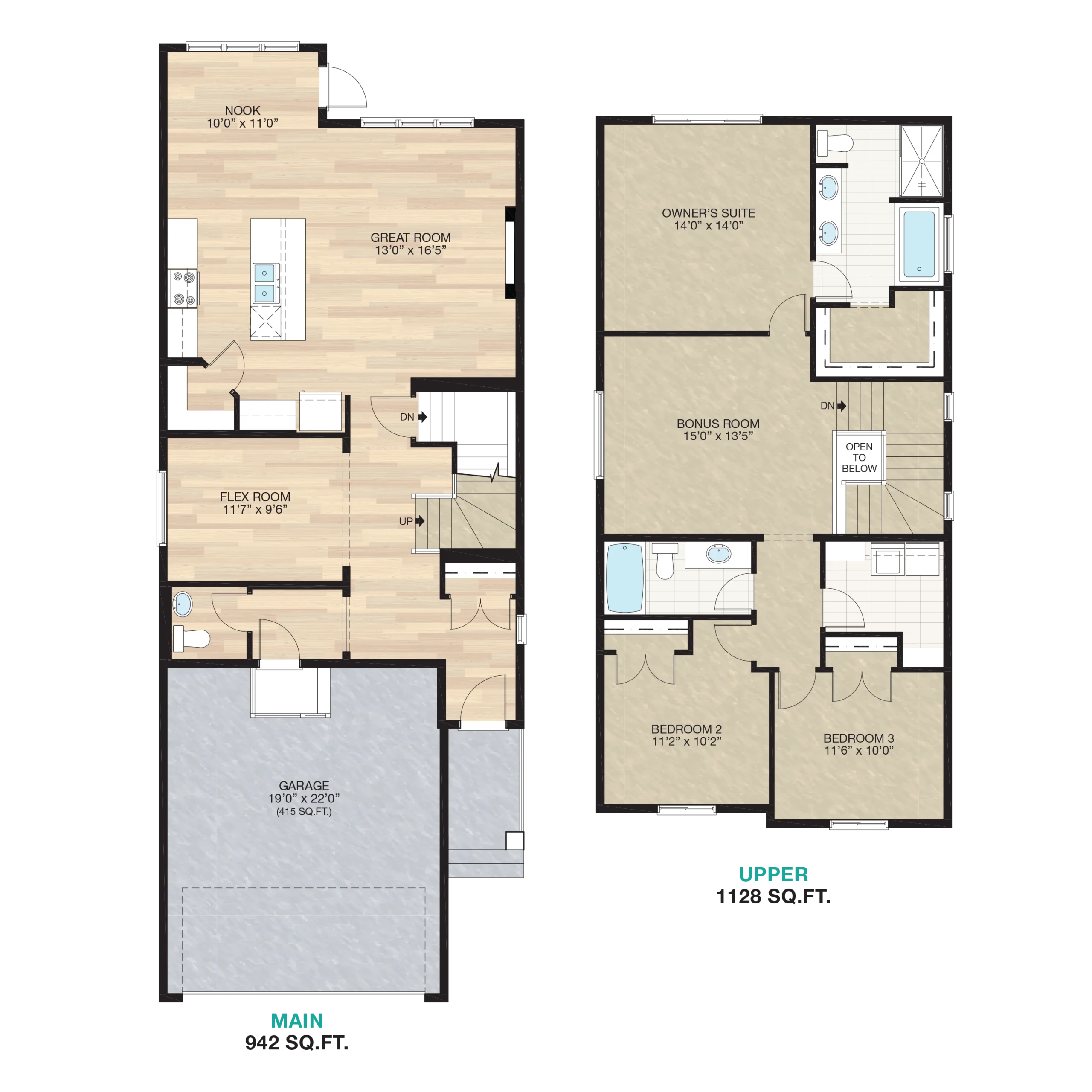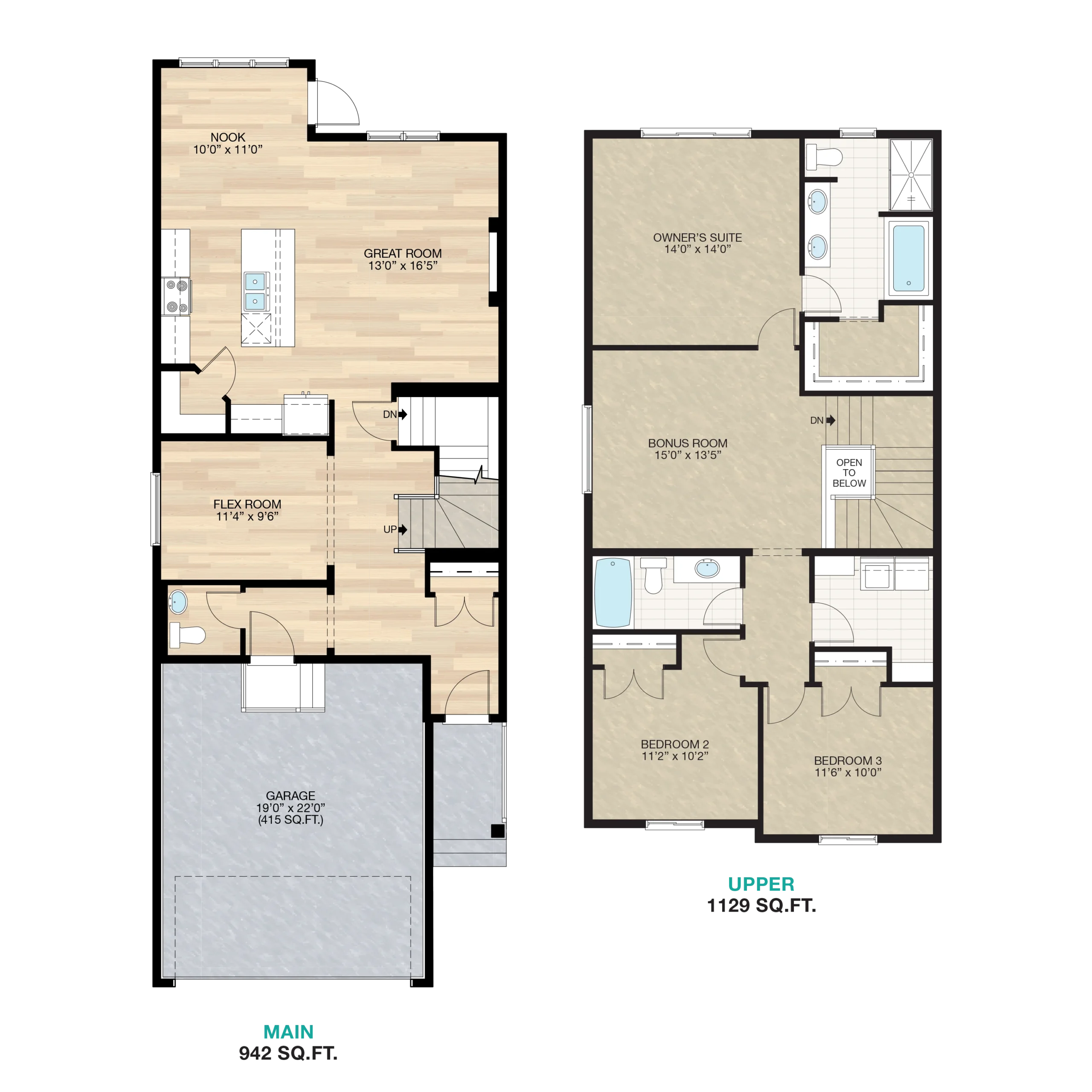 The Braxton is perfect for those who value adaptable spaces and a layout that supports the natural flow of daily life. Find a main floor flex room suited to focused work, paired with an open kitchen layout that keeps everyday living easy and organized. Upstairs, a central bonus room anchors family space to gather. The owner’s suite features a serene 5-piece ensuite and large walk-in closet, creating a private and restful retreat after day’s end.