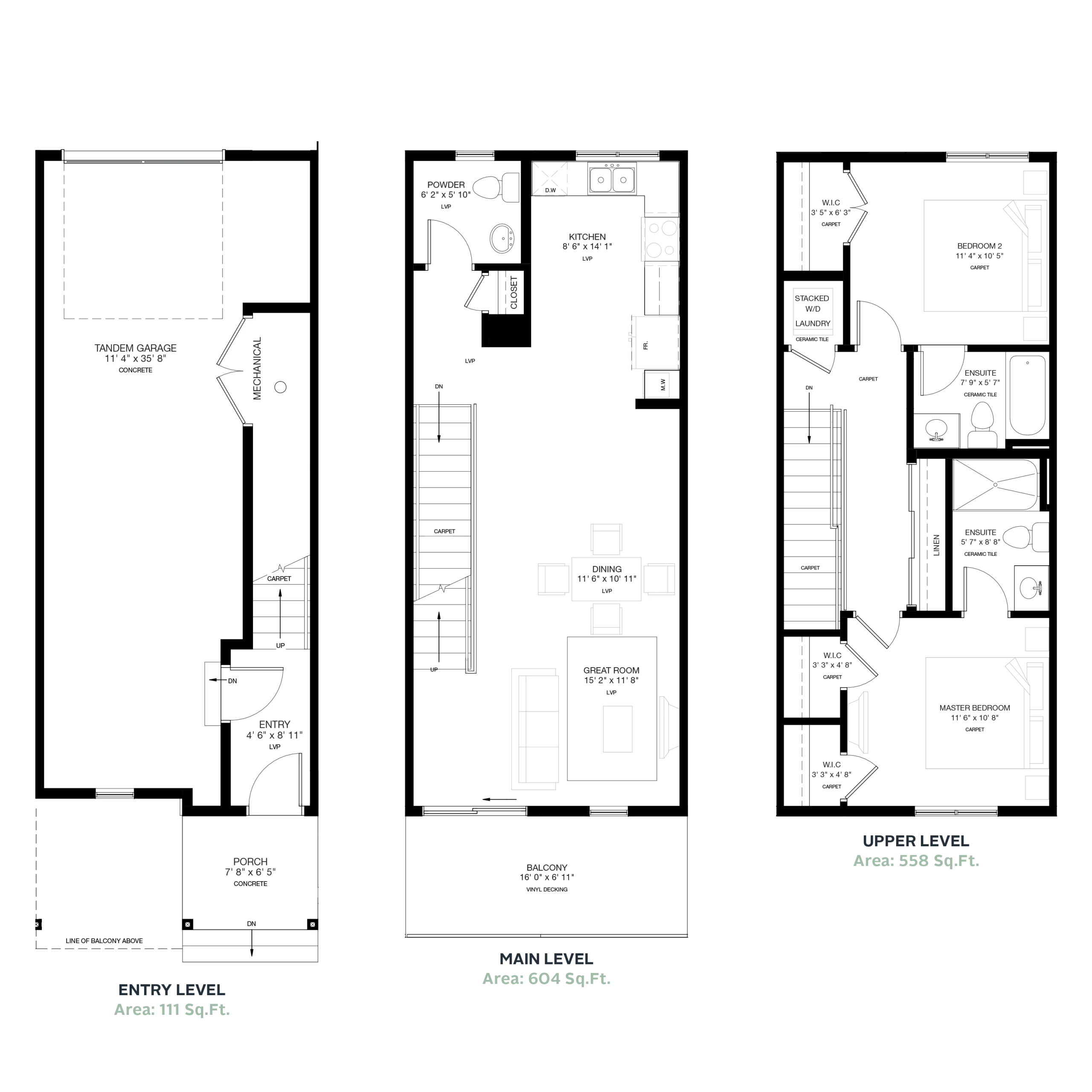 The Emerson offers a l-shaped kitchen tucked away from the dining and great room, perfect for separating cooking and entertainment spaces. Upstairs, the owner’s suite features a 4-piece ensuite and a dual entry walk-in closet.