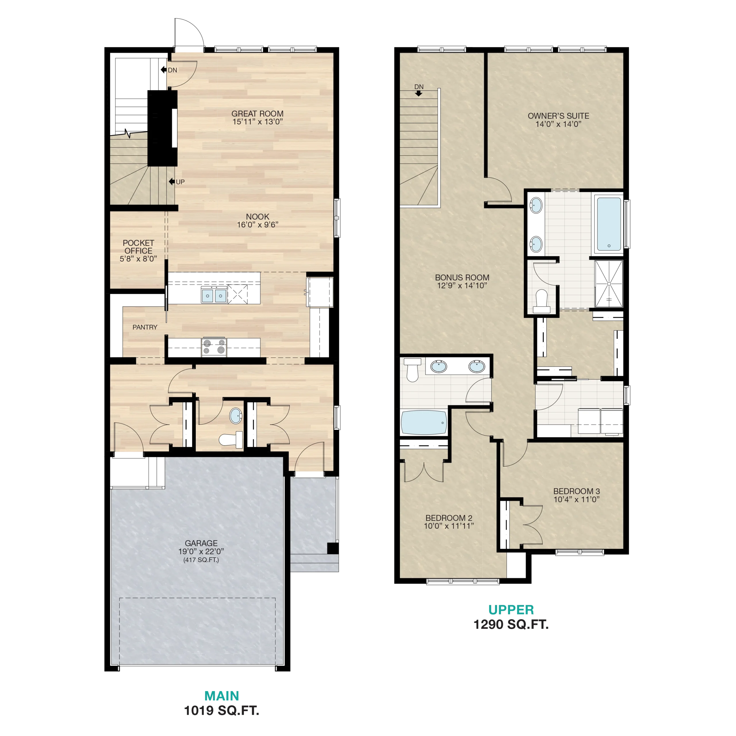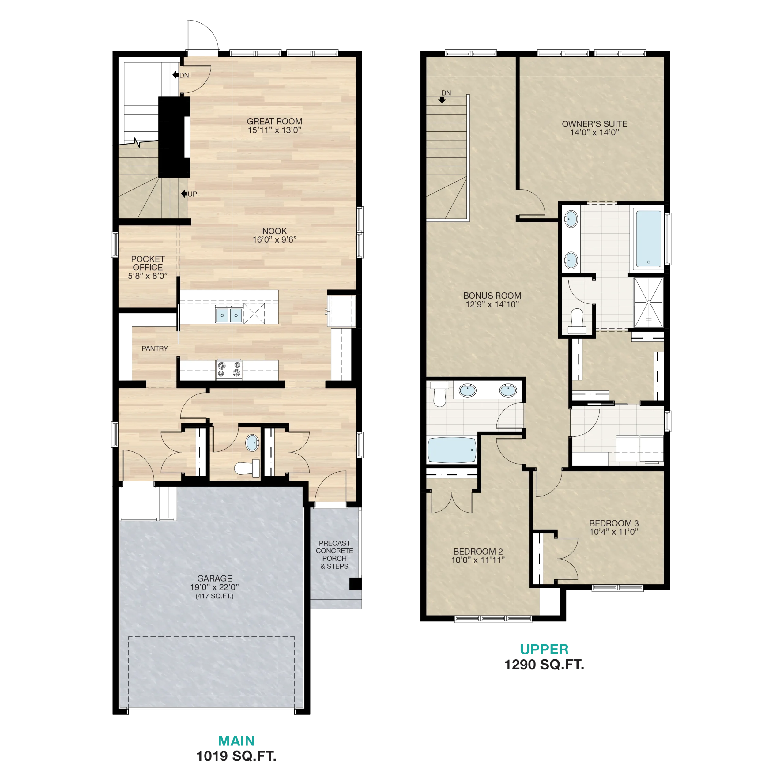The Encore, part of Trico’s 30th Anniversary collection, is a refined expression of thoughtful design that balances sophistication with practical flow. A galley kitchen with a walk-through pantry keeps hosting and daily routines efficient, while a private pocket office supports focused work. Upstairs, the owner’s suite elevates everyday living with a 5-piece ensuite and direct walk-in closet access to laundry.