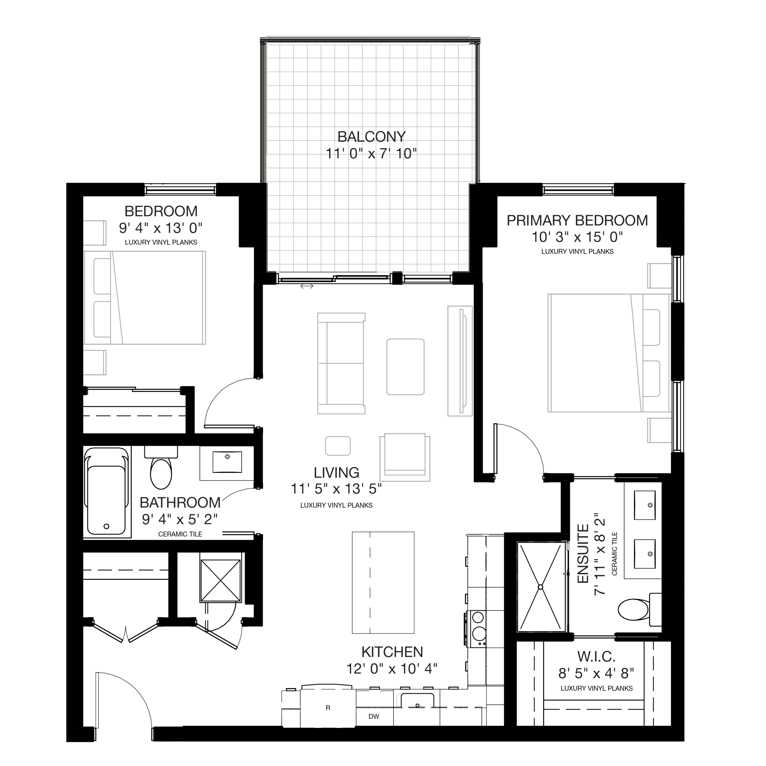 The kitchen anchors the home, providing ample room for cooking, gathering, and entertaining. The living area flows seamlessly to the 86 Sq.Ft. balcony, creating a connected indoor-outdoor experience.