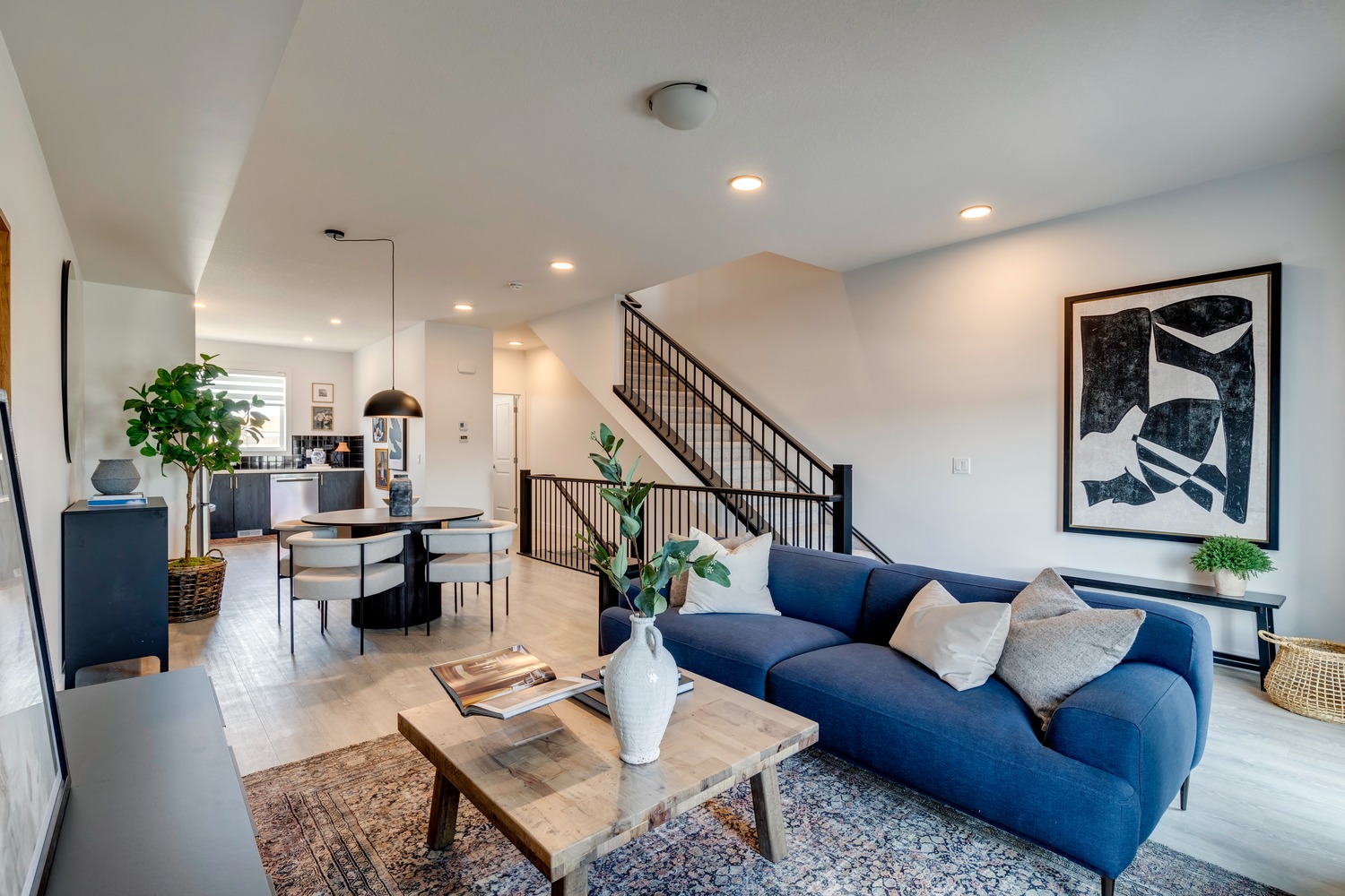 Open-concept main floor with powder room
