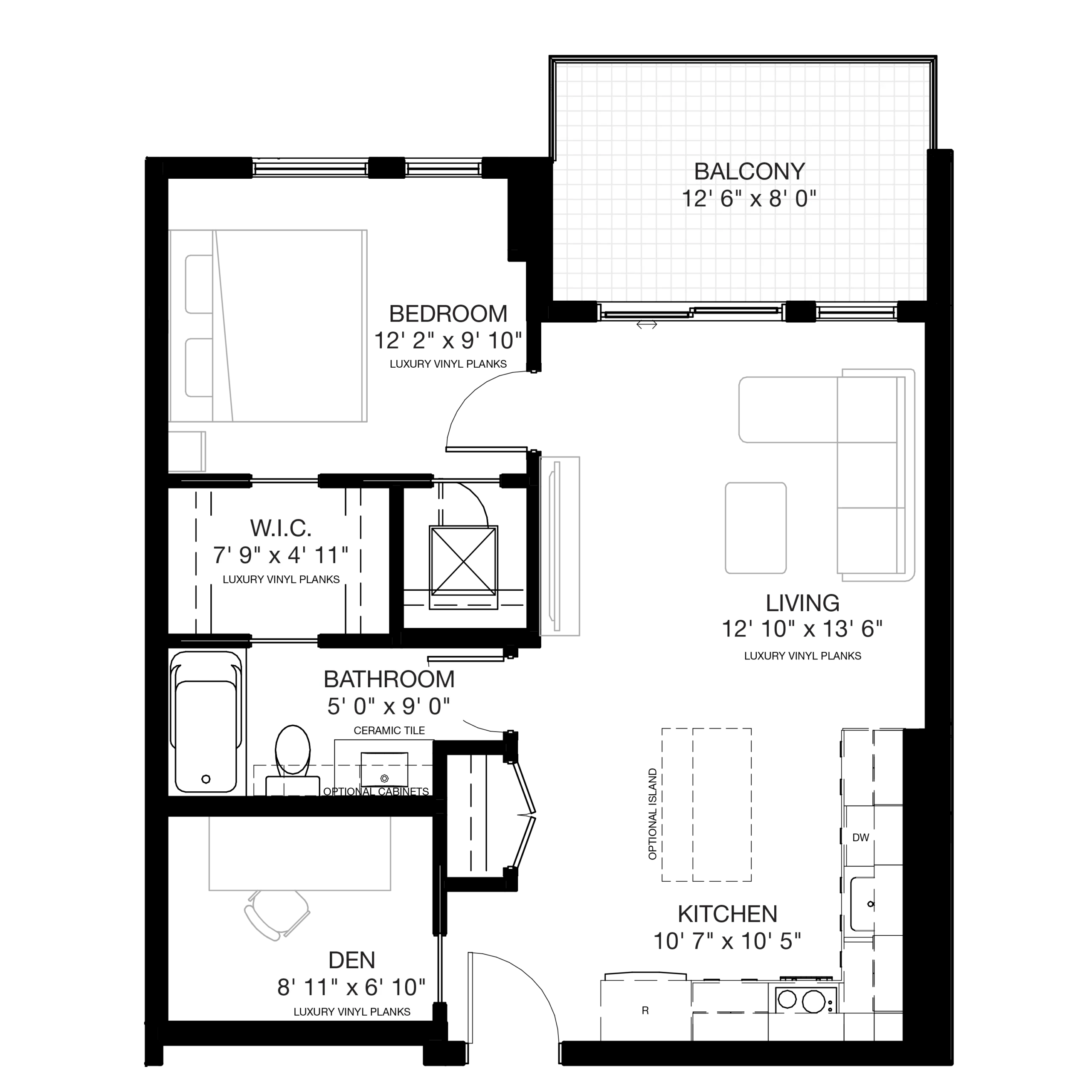 The Lorette 3 delivers 652 Sq.Ft. of well-designed space, featuring 1 bedroom + den and 1 bath.
