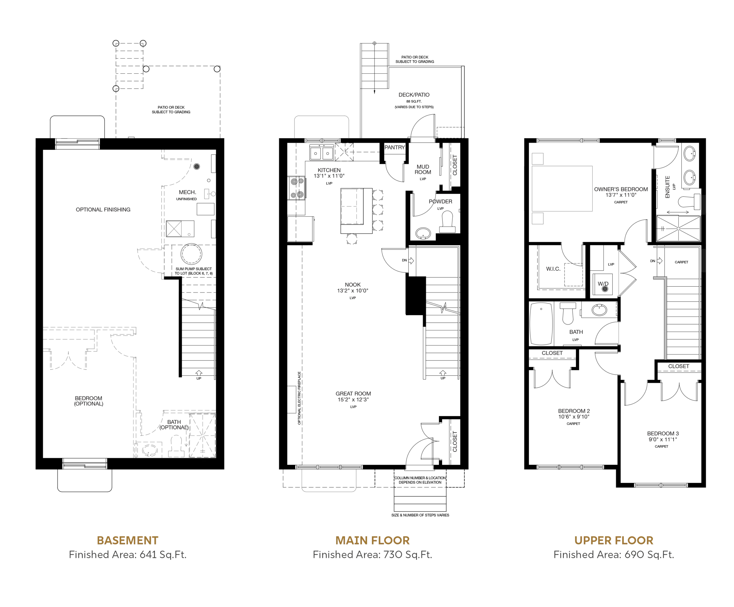 The Sparrow is a well-designed 3 bedroom, 2.5 bath mid-unit townhome offering 1,420 Sq.Ft. of modern, functional living space. The main floor showcases an open layout where the kitchen flows effortlessly into the dining area and spacious great room, creating a welcoming setting for both quiet evenings and entertaining. Upstairs, the owner’s bedroom includes a walk-in closet and private ensuite, while 2 additional bedrooms and a full bath provide comfortable accommodations for family or guests. Optional configurations allow for a loft or dual ensuite layout, and a finished basement option can expand the home with additional living or bedroom space.