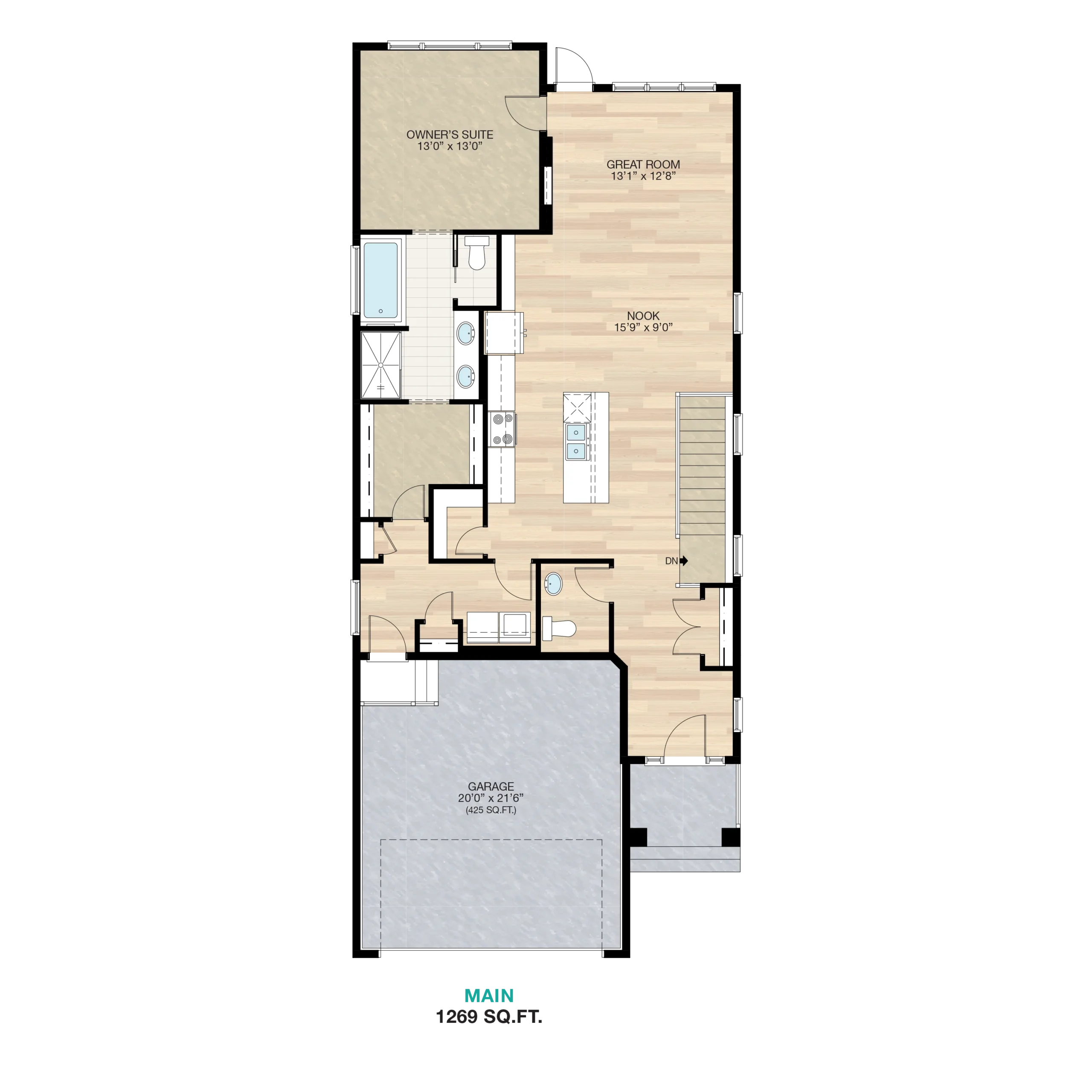 The Wynwood 28 offers even more room to enjoy, featuring a spacious open-concept layout that flows through the generous kitchen, nook, and great room. The main floor owner’s suite includes a walk-in closet and elegant 5-piece ensuite — perfect for homebuyers or those wanting extra space without the stairs. With options and upgrades that maximize space and function, this is the perfect layout for those looking for efficient living tailored to their lifestyle.