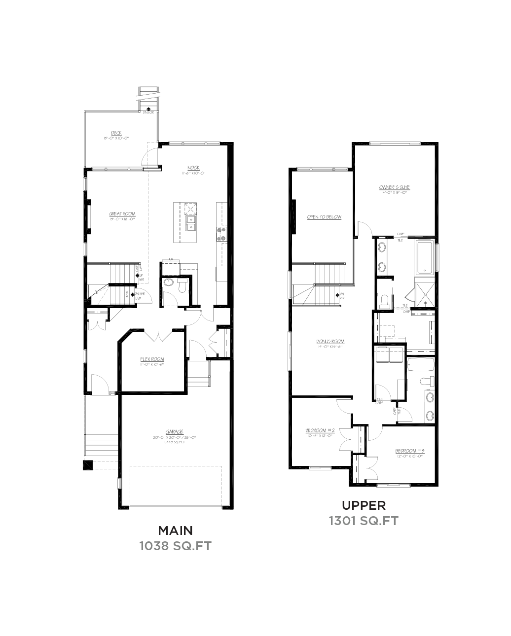 The Cambridge 26 offers a bright, airy main floor anchored by an 18-foot great room with a cozy fireplace and an open-to-below design that makes the space feel truly expansive. A practical pocket office sits close by—perfect for catching up on emails or keeping daily routines organized—while the walk-through pantry adds effortless flow between the kitchen and everyday storage. Upstairs, a central bonus room creates a natural separation between the owner’s retreat and the additional bedrooms, giving everyone their own space to unwind.What sets this Trico home apart: