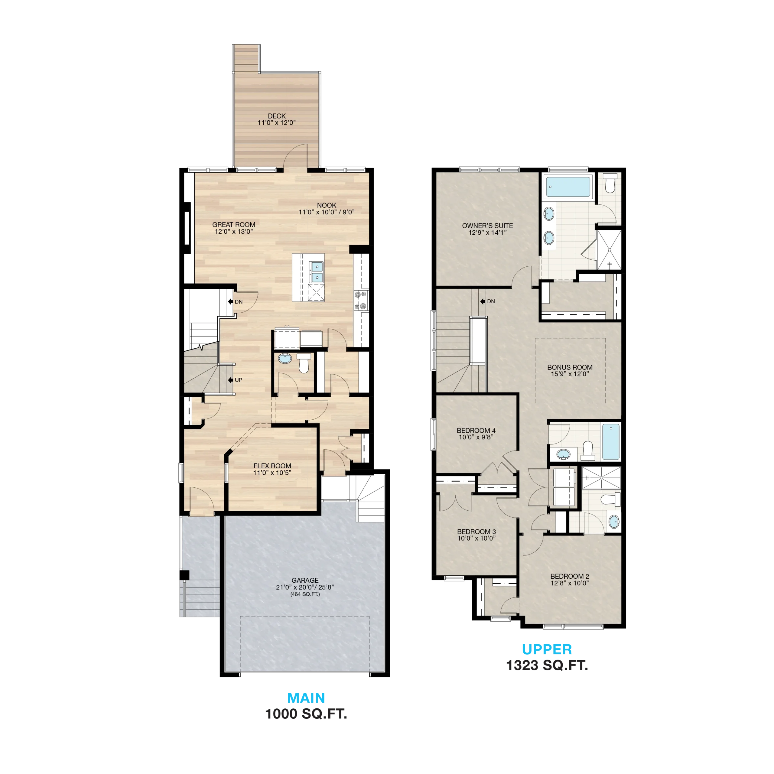 This home has 4 bedrooms with a central bonus room on the upper floor, and features multiple upgrades such as a walk-through pantry, an electric fireplace in the great room, upgraded pot lights in the kitchen, and dual ensuites with tile & glass shower.