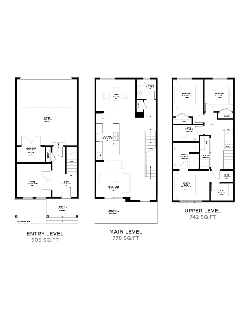 The Oakwood offers a versatile flex room right off the entry of this home, perfect for separating personal and professional life. On the main level, a large central kitchen supports the dining area and great room, with a large balcony for seamlessly transitioning outdoor and indoor entertainment. Upstairs, 2 bedrooms, including the owner’s suite featuring a 4-piece ensuite, walk-in closet, and nook, maintain privacy.What sets this Trico home apart: