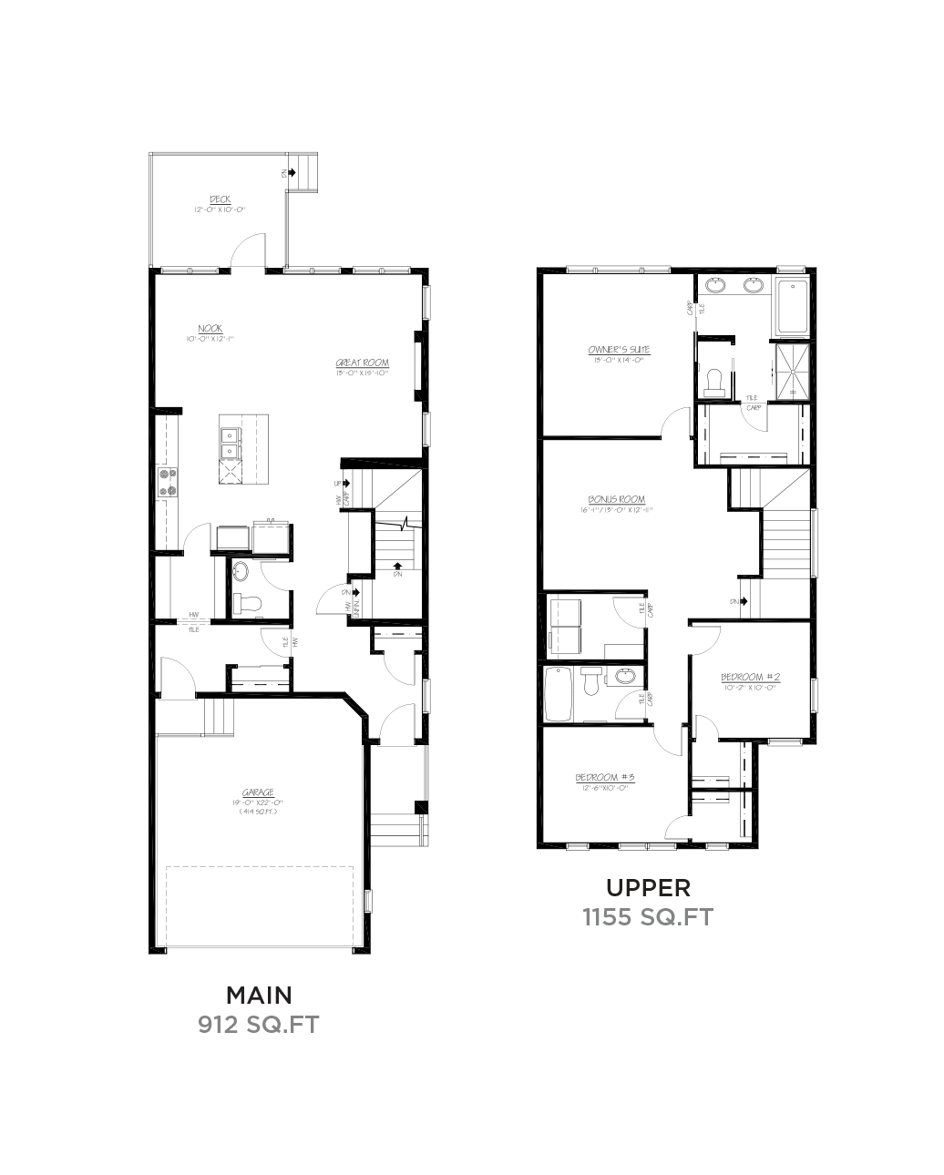 The Oxford II offers the perfect model for those looking for a functional plan, with the opportunity to upgrade based on their lifestyle and preferences. A great room, nook, and kitchen support everyday routines, while a central bonus room on the upper floor provides a hub for gathering, also separating the owner’s suite and 2 additional bedrooms for private spaces.