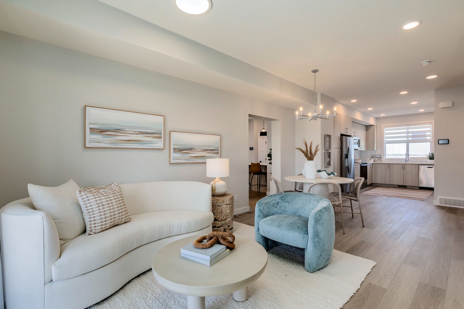 This beautifully finished home faces green space pairs multiple upgraded features with a timeless with a warm Driftwood interior palette. Designed for modern lifestyles, it offers open-concept living, a flexible entry-level suite, upgraded kitchen and lighting, and private dual-ensuite bedrooms—just minutes from parks, schools, and everyday amenities. A/C rough-ins, zebra blinds and LVP flooring on the upper floor complete the stylish vision.