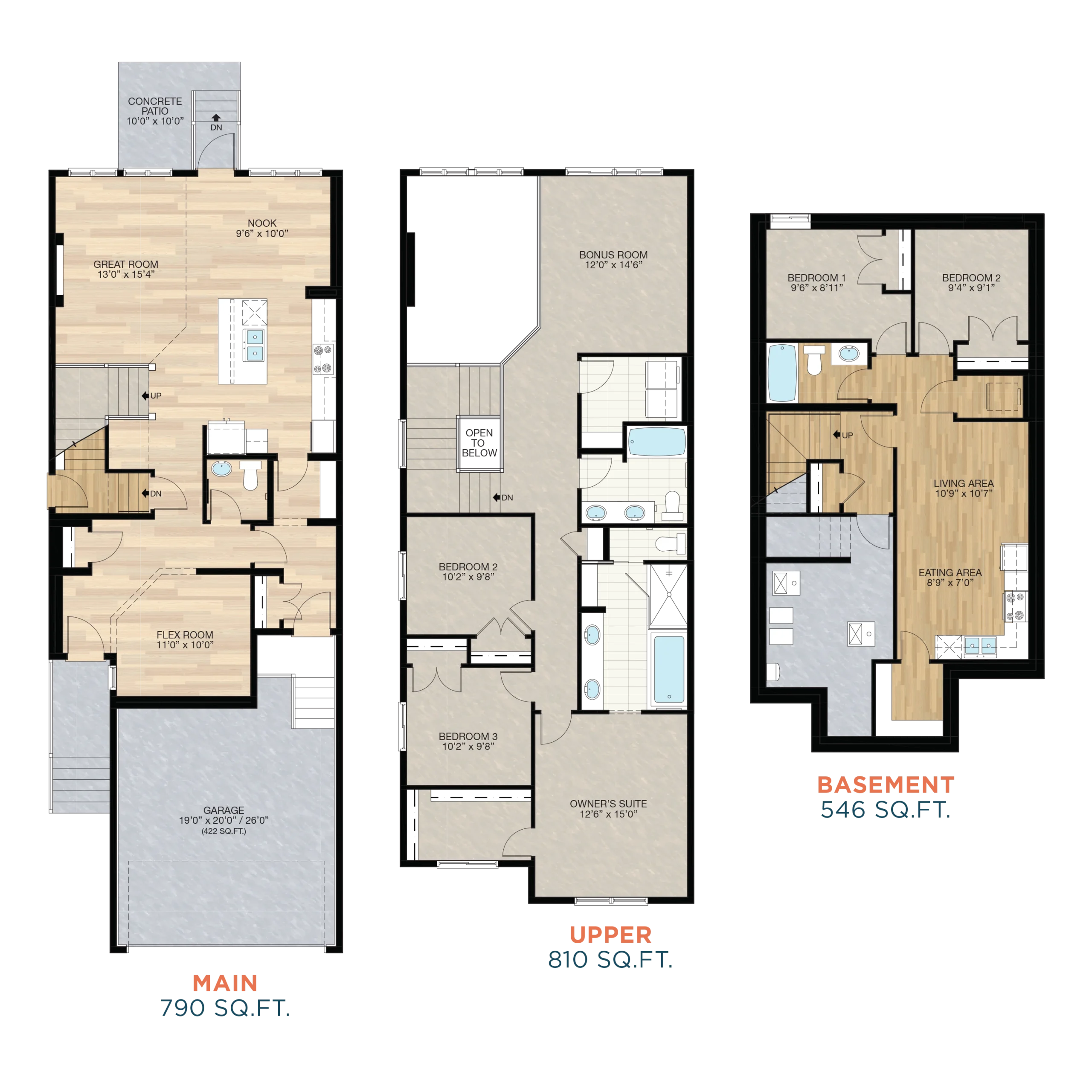 The Aria offers the perfect balance of comfort and style, featuring an open living area and a light-filled dining nook ideal for daily life or hosting friends. Upstairs, the inviting owner’s suite includes an ensuite with soaker tub – the perfect place to unwind at the end of the day.