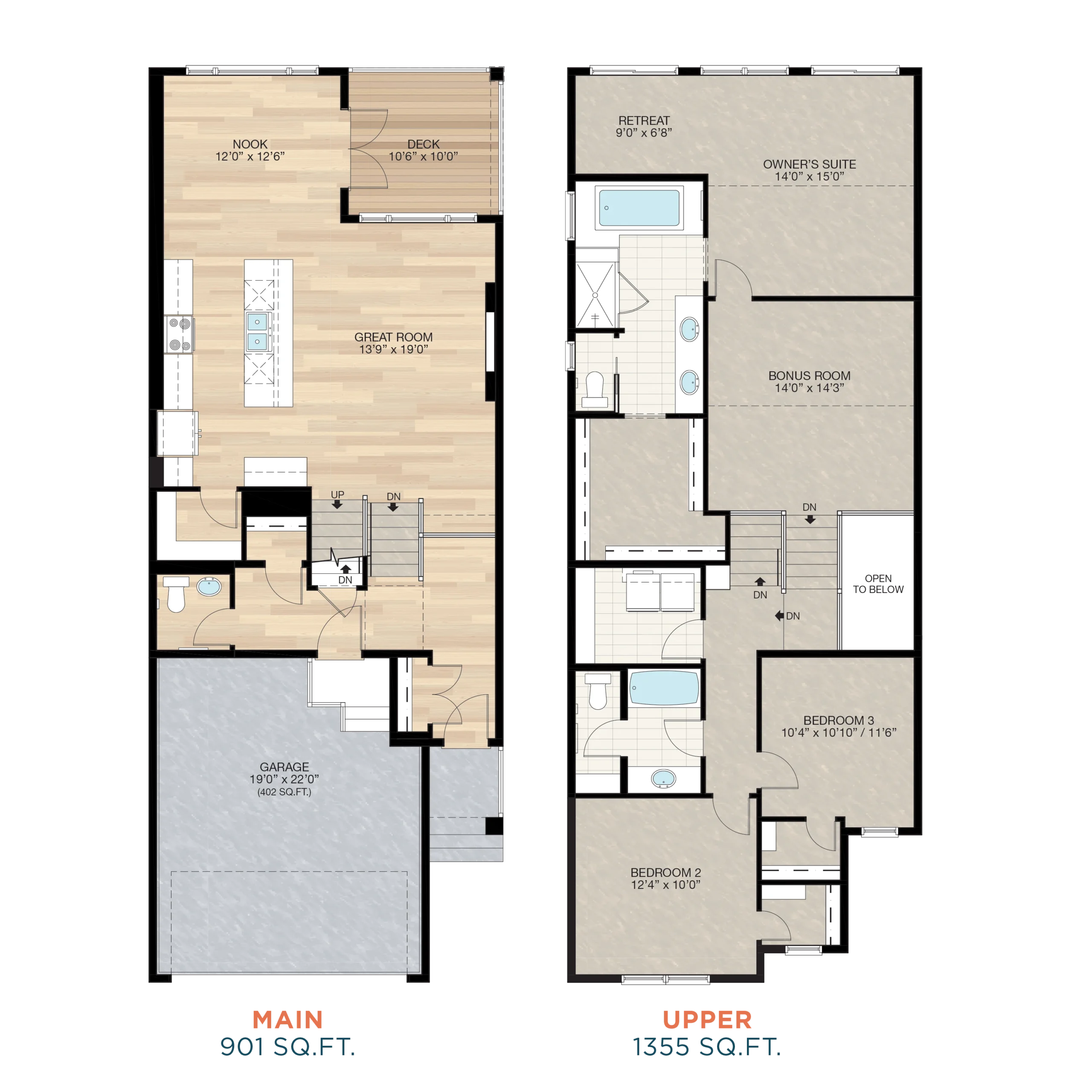 Options to elevate home, including bonus room, stairwell vault, dual vanities, dual owner’s suite closets, and more.