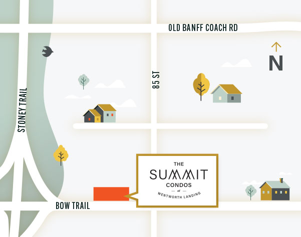 The Summit Condos will be located in the heart of Wentworth Landing, near the intersection of Bow Trail and 85 Street SW